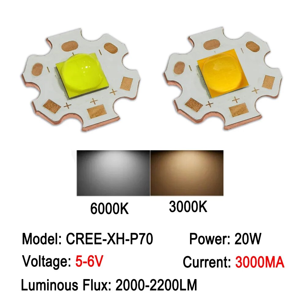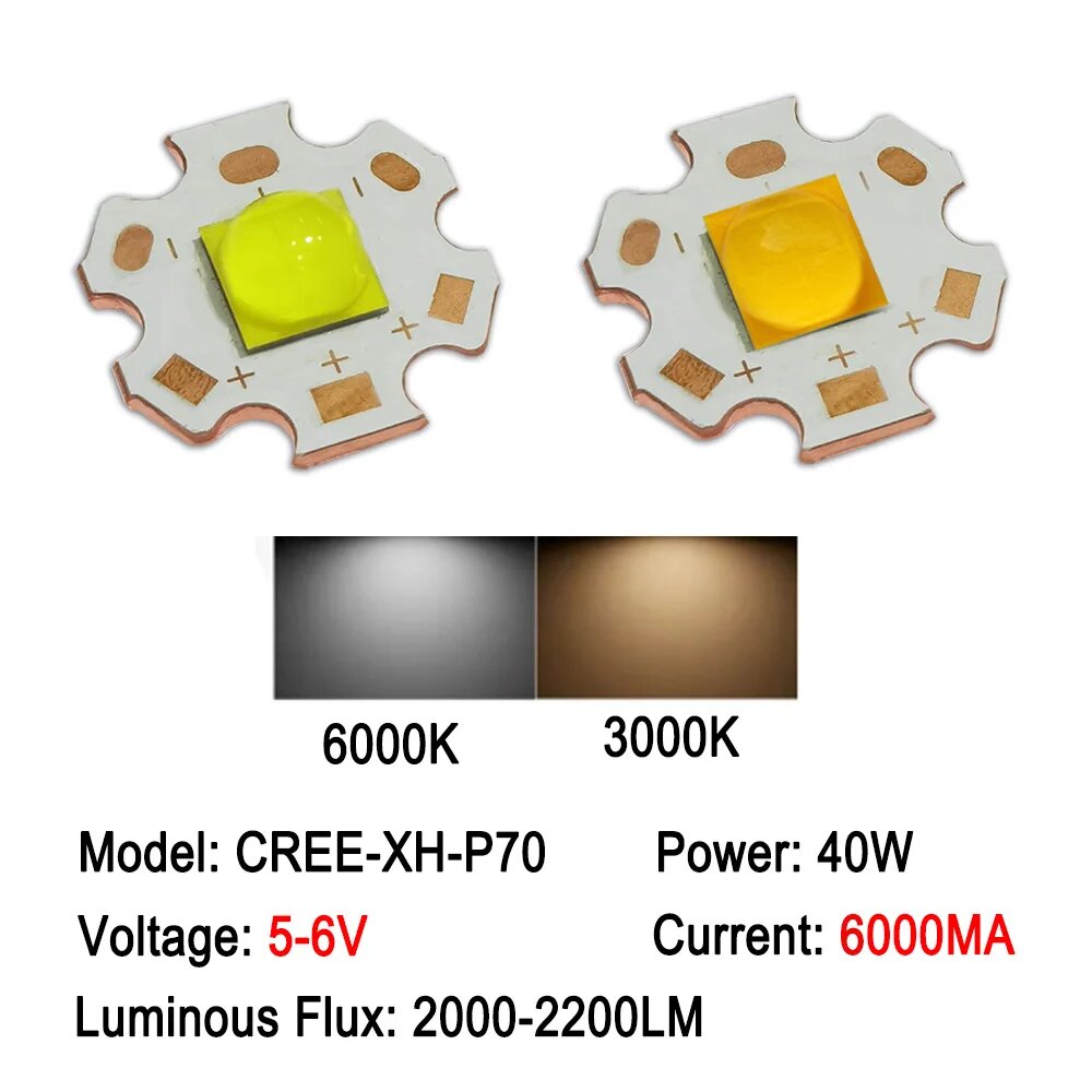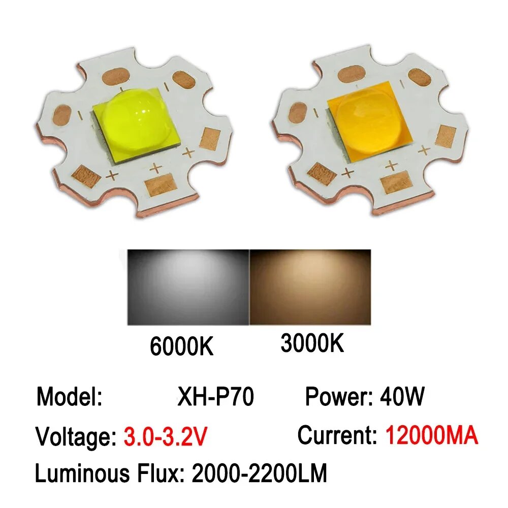 Купить Фонарик в виде лампы высокой мощности XHP70, 20 Вт, 40 Вт, 7070, 3 в, 6 в, 12 В, 1 шт, 6000K-6500K, 40W 7070-3V