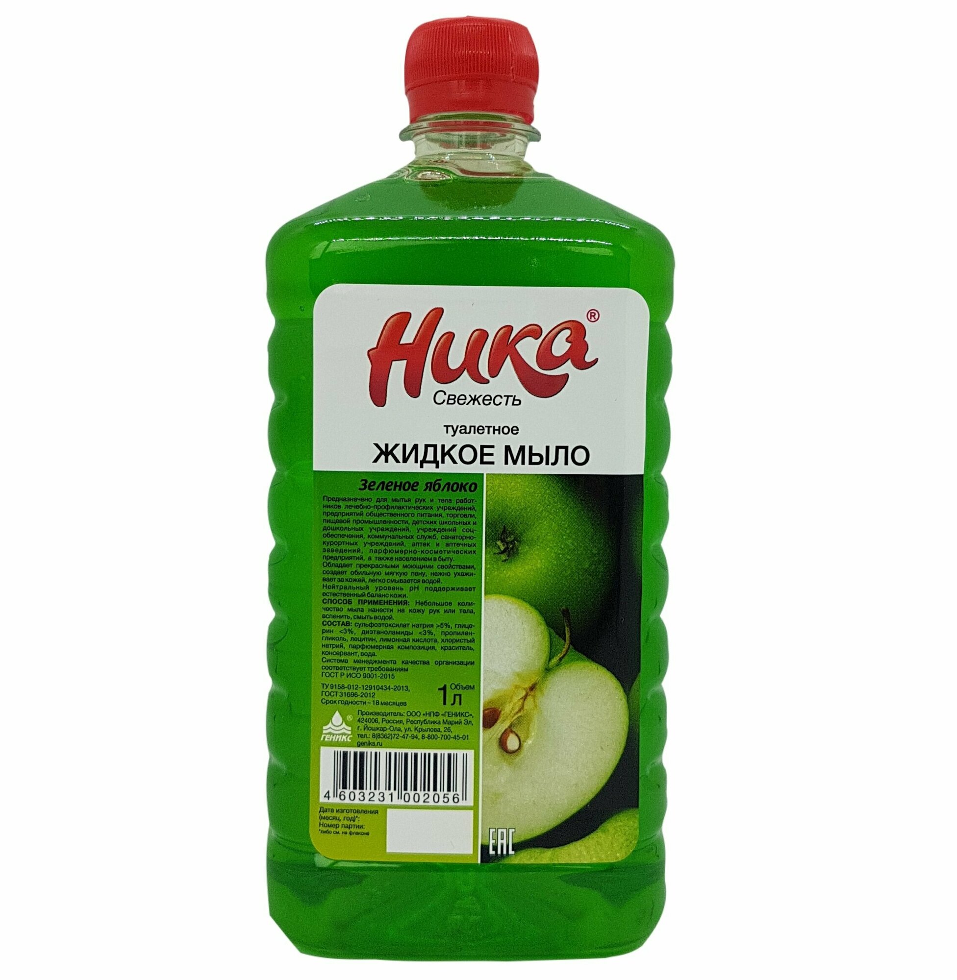 Купить Ника Мыло туалетное жидкое Свежесть Зеленое яблоко, 1 л