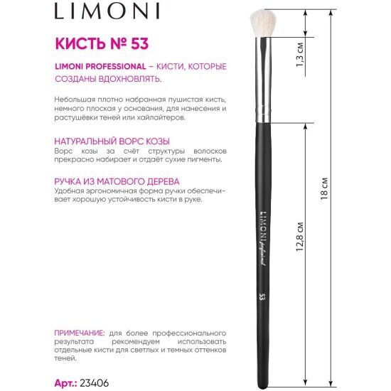 LIMONI №53 Кисть для нанесения теней (коза), Limoni