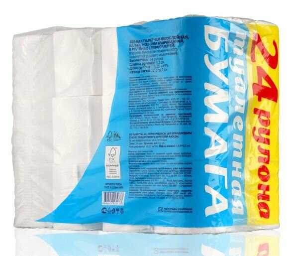 | Отзыв: | Дешевая. Длина 17 метров. 2х слойная. В пачке 12 рулонов. |