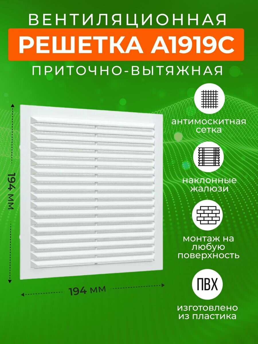Вентиляционная решетка 194х194 с сеткой A1919C пластик белая