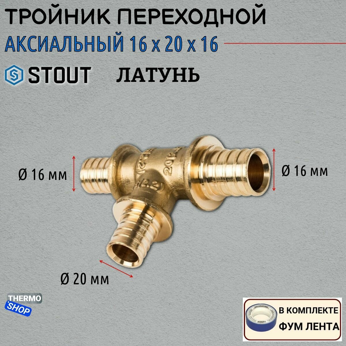 Тройник STOUT SFA-0014-162016 16x20x16 аксиальное 1 шт.