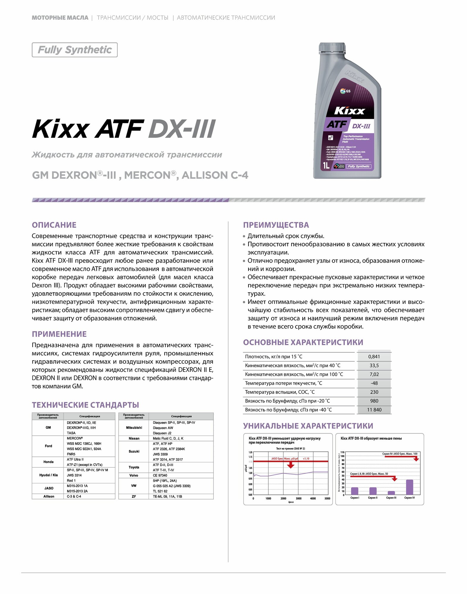 Масло трансмиссионное "kixx" atf dx-iii (1 л) синт. Kixx L2509AL1E1