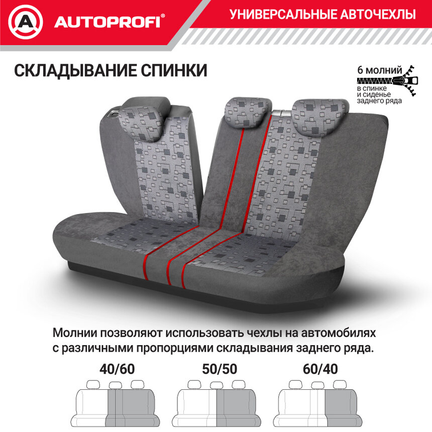 Чехлы автомобильные универсальные эко-кожа тёмно-серый (М) "AUTOPROFI" Comfort (11 предм, карман, 6