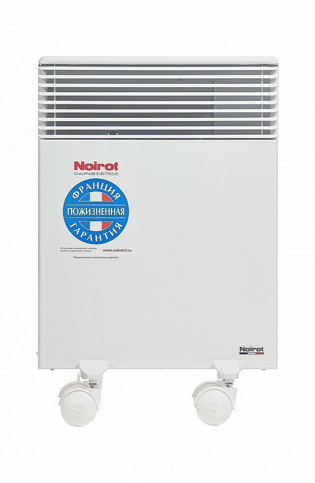 Покупаю 2-й конвектор Noirot Spot E-5 Plus. Первый на 1,5кВт, сейчас взял на 1кВт. Качество очень понравилось, т.к. есть с чем сравнить. Более дешевые модели щелкают. И если днем это не так критично, то ночью, для особо чутких людей, спать не комфортно. С Noirot таких проблем нет. Электронный регулятор температуры - штука удобная. Температуру поддерживает точно в соответствии с выставленной. Проверял по градуснику в комнате. Также производитель дает пожизненную гарантию. Если говорить о прогреве холодного помещения, то в -20 в доме из бруса нагреть за пару часов комнату так и не получилось. Наверное надо было бы больше времени, но на помощь пришла дровяная печь. Но с поддержанием температуры конвектор справляется на ура. В общем советую именно такой конвектор. Произведен во Франции. Пожизненная гарантия - громко сказано. Но судя по качеству изделия его должно на долго хватить.