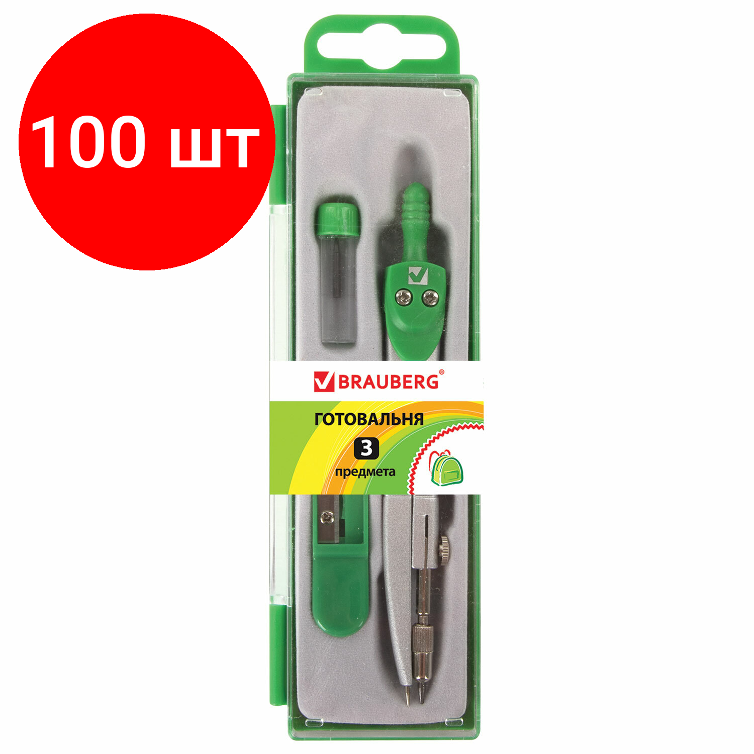 СохранитьКомплект 100 шт, Готовальня BRAUBERG "Klasse", 3 предмета: циркуль 125 мм, точилка, грифель, пенал с подвесом, 210660 интересное: