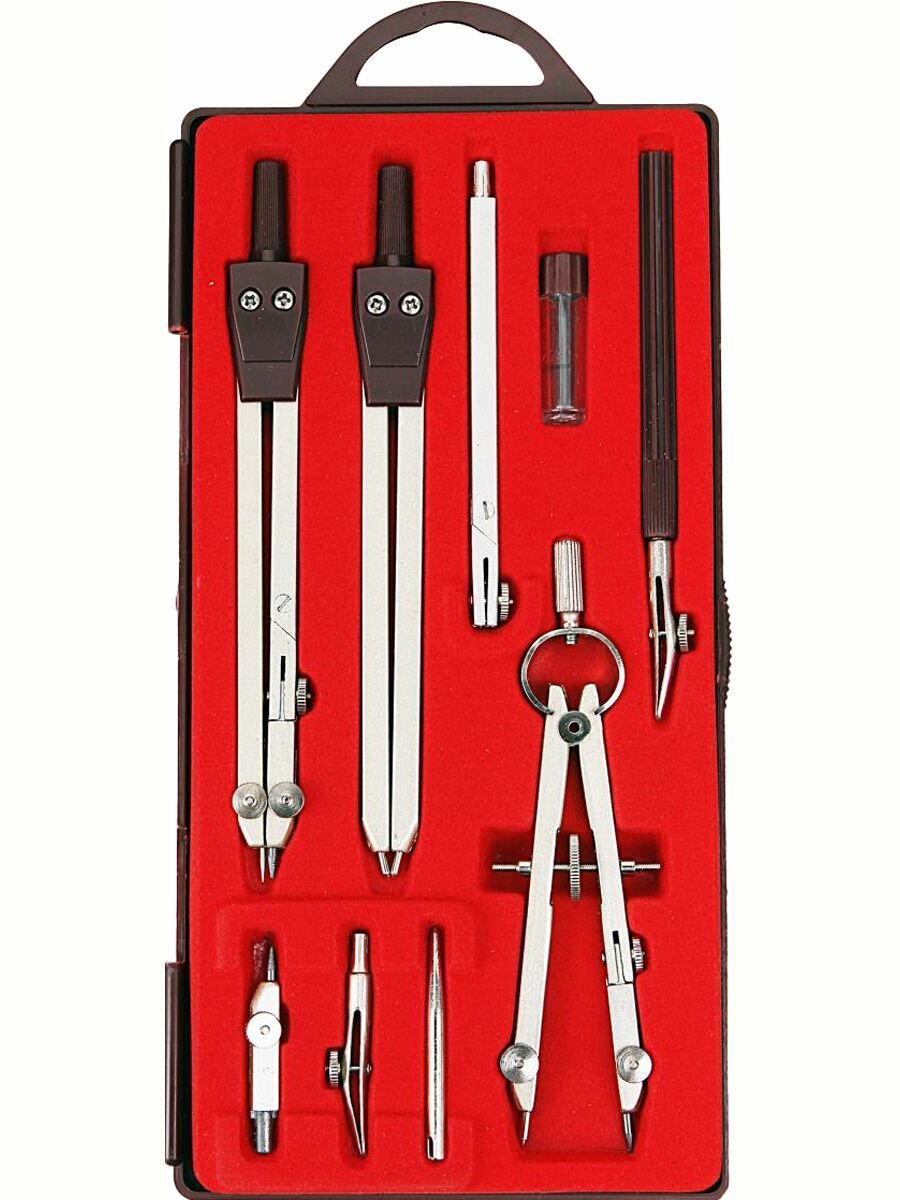 Циркуль школьный измеритель для черчения в футляре. Готовальня 9 предметов