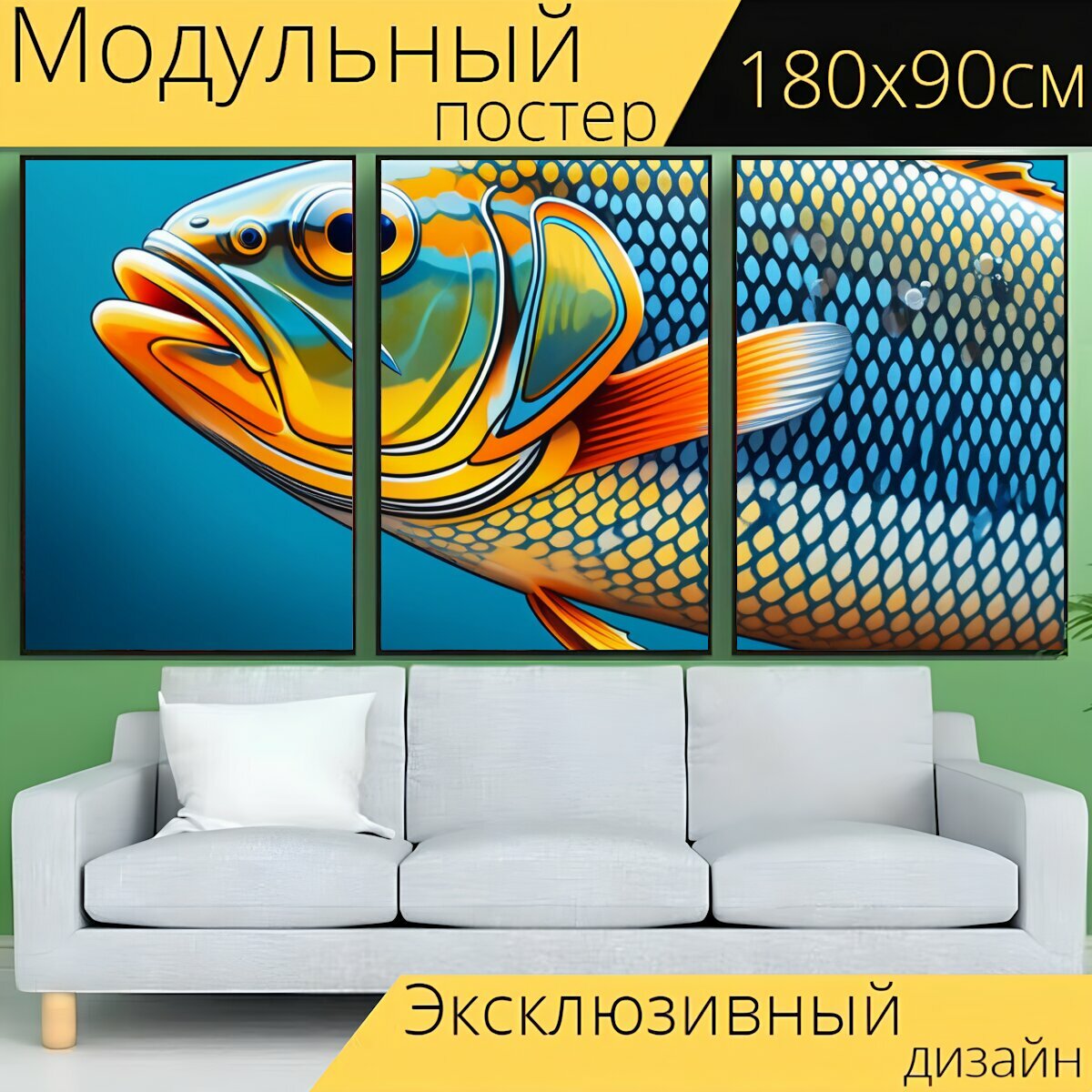 Модульный постер "С рыбой , " 180 x 90 см. для интерьера на стену интересное:
