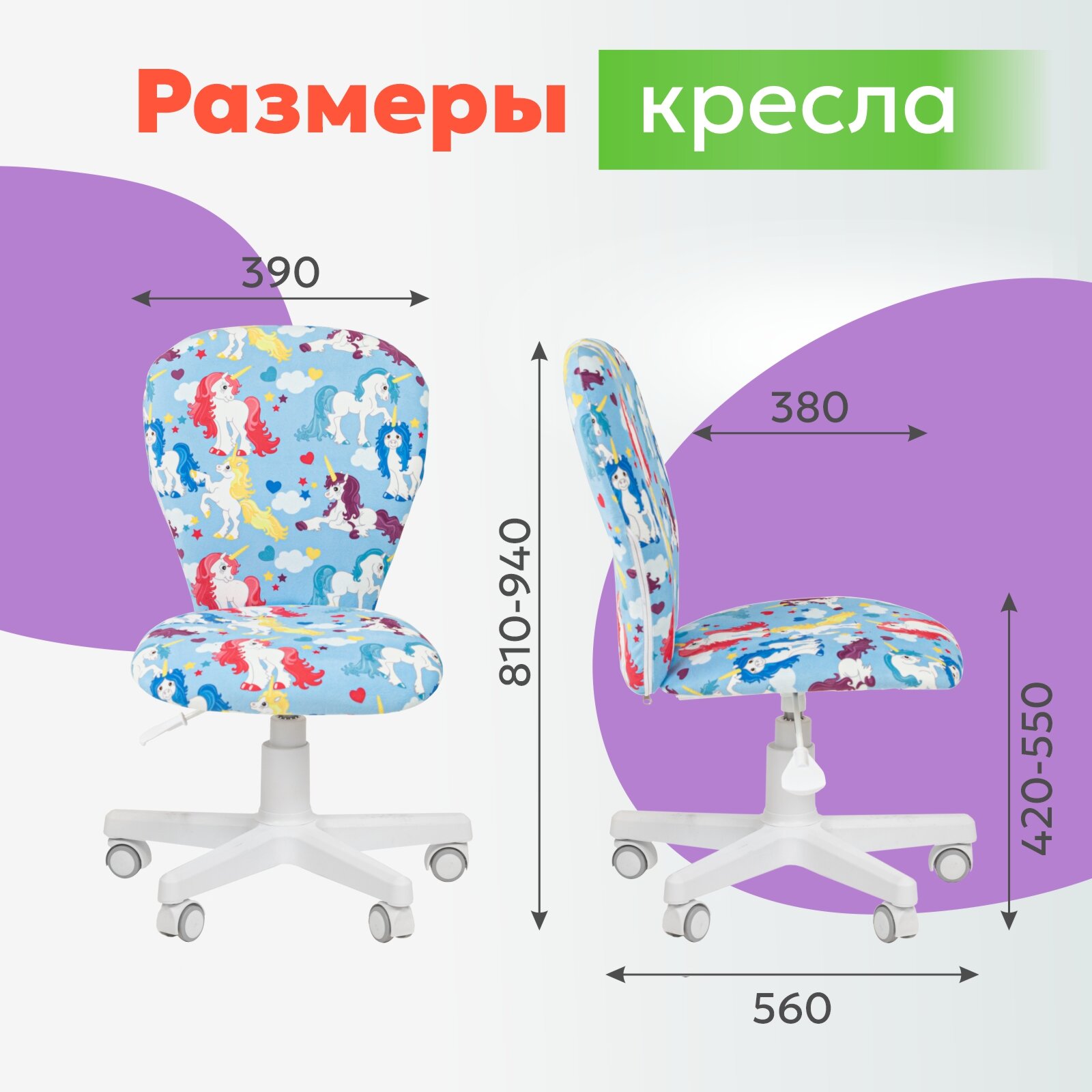 Ткань очень красивая, приятная на ощупь и цвет прекрасный! Рисунки с единорогами естественно оценила дочь. Все кресла, что я смотрела были ярко-розового, голубого или зеленого цветов (поднадоели такие расцветки) Попыталась немного поправить чехол чтобы было меньше морщин сзади, расправила в нескольких местах поролон под чехлом, потом с большим трудом застегнула молнию. Колесики едут тихо. В целом, стульчик очень понравился и формой и цветом и функциональностью. |