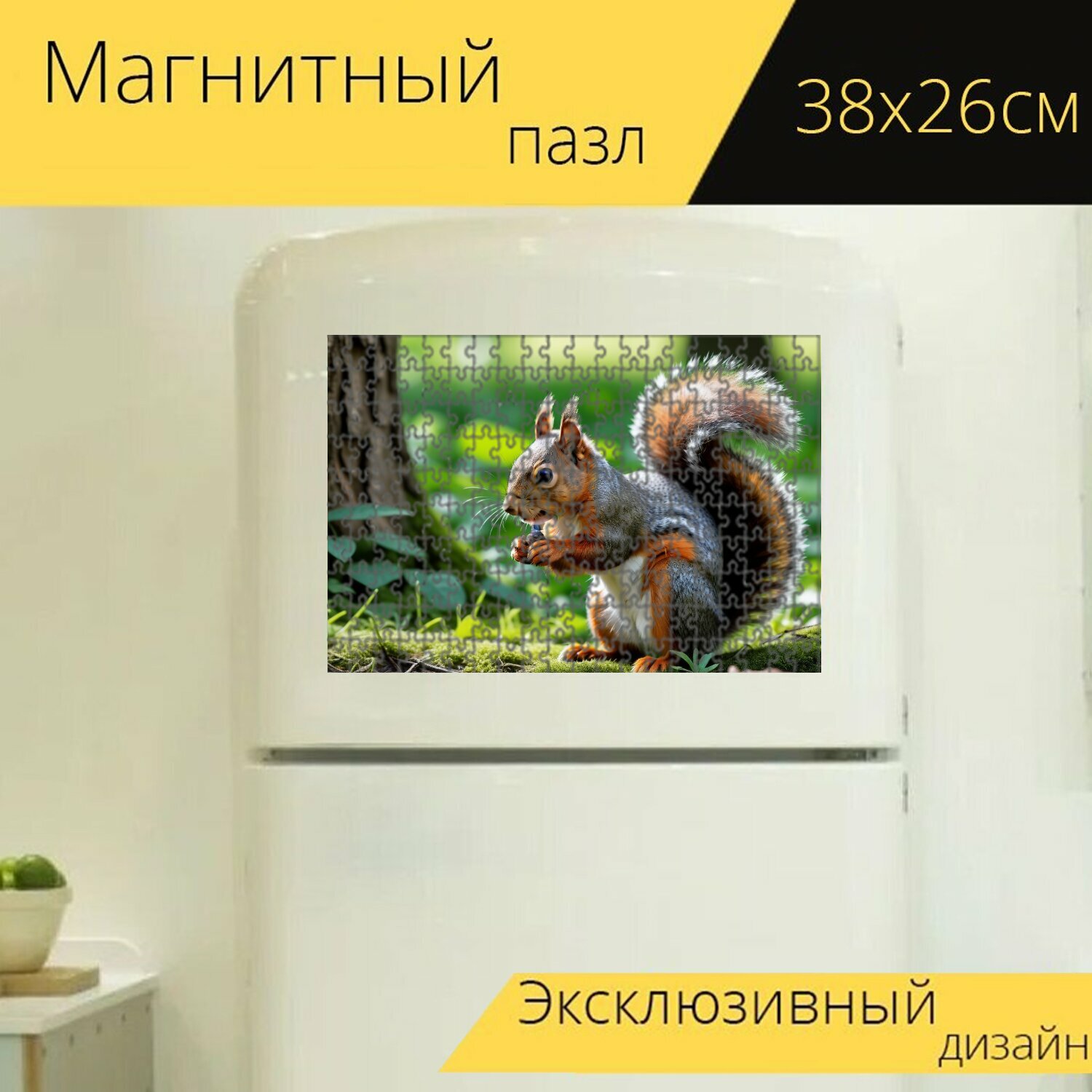 Магнитный пазл "Поляна, где играют белки" для интерьера, 38х26 см. интересное: