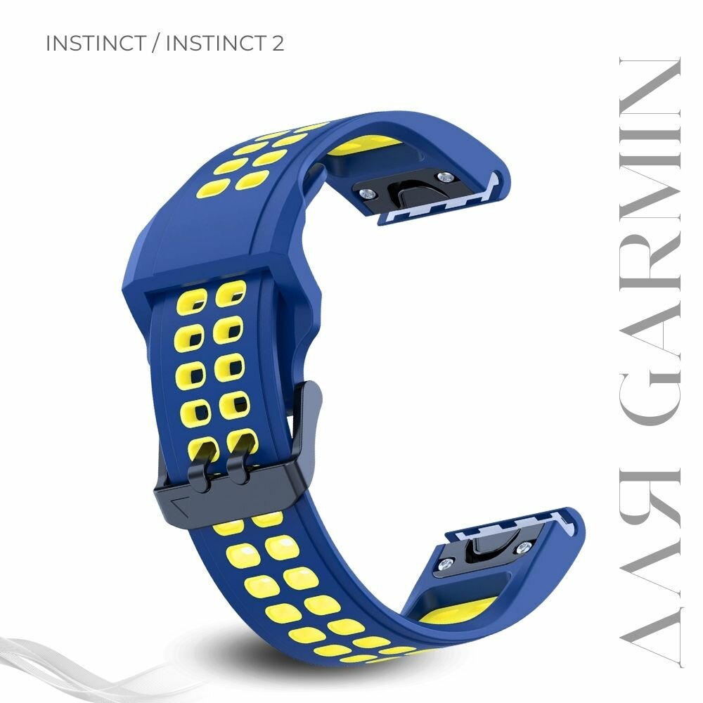 Ремешок для часов Garmin Instinct 22 мм, темно-синий/желтый интересное: