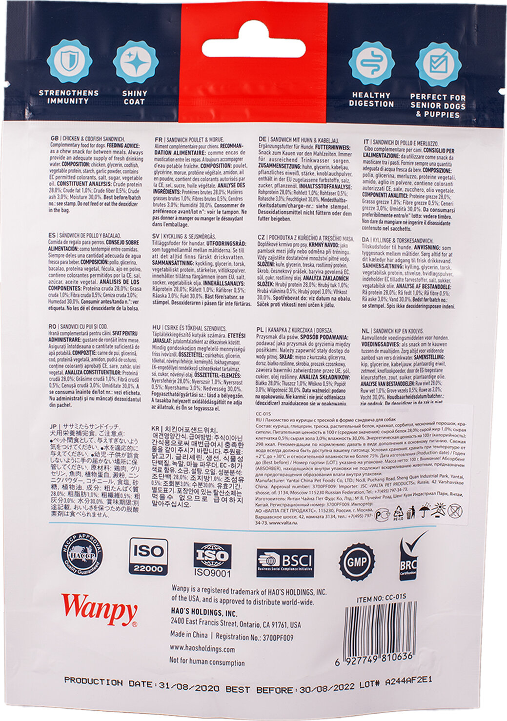 Wanpy Dog курица с треской в форме сэндвича 100 г .