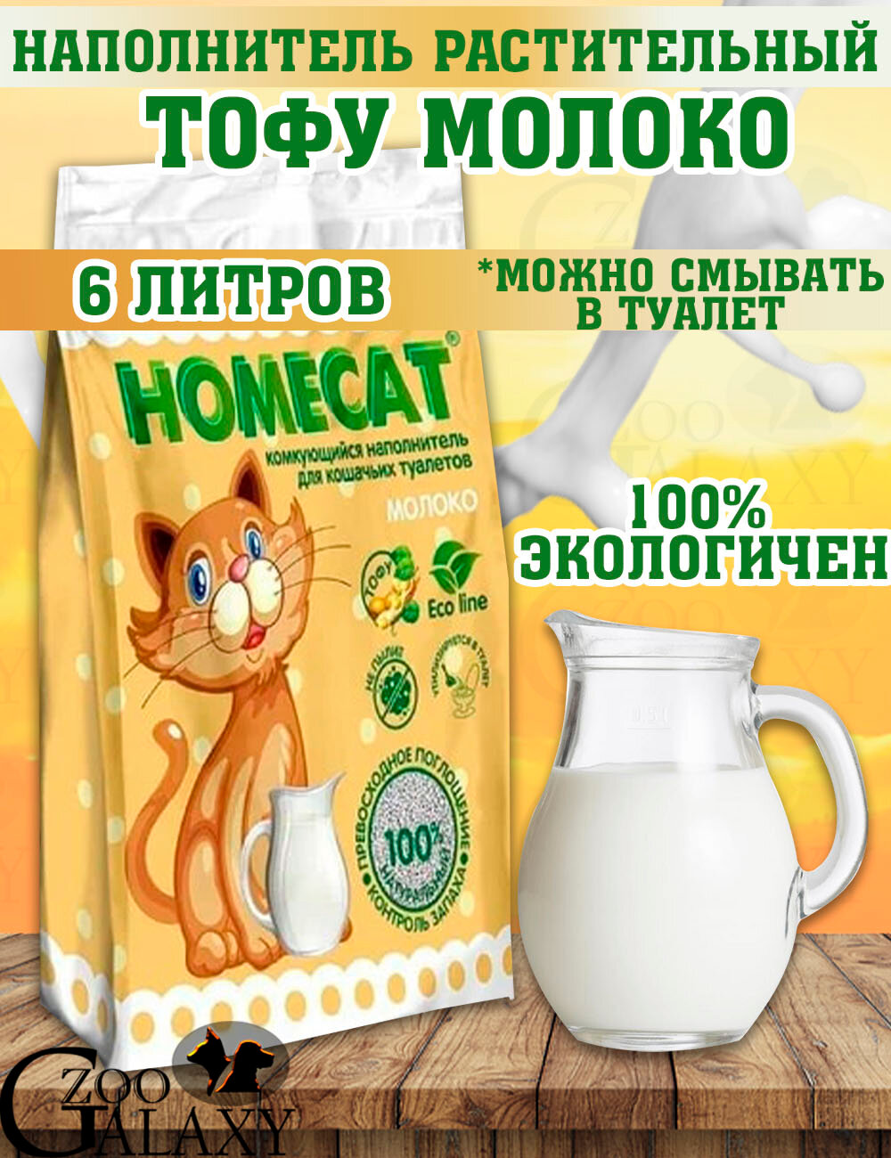 HOMECAT эколайн молоко наполнитель комкующийся для туалета кошек (6 л)