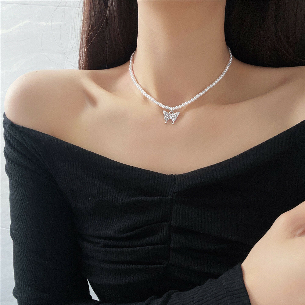 Купить Цепочка на шею из бусин с кулоном "бабочка"