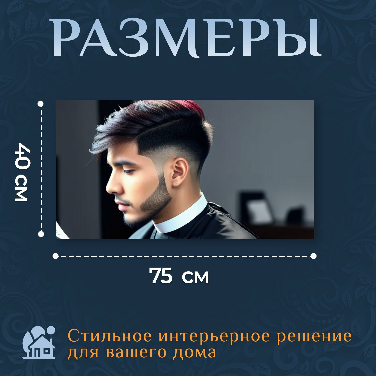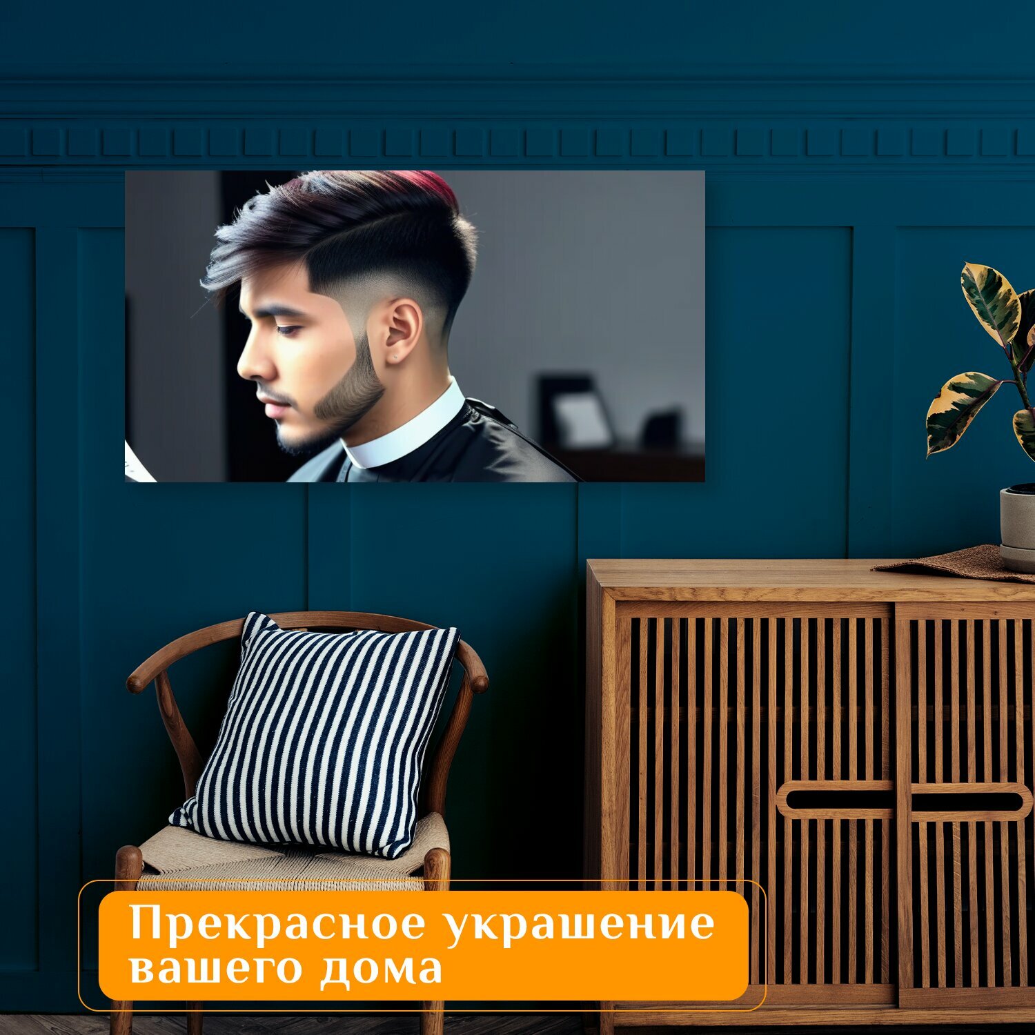 Купить Картина на холсте в парикмахерскую "Стрижка в стиле классической музыки , " на подрамнике 75х40 см. для интерьера