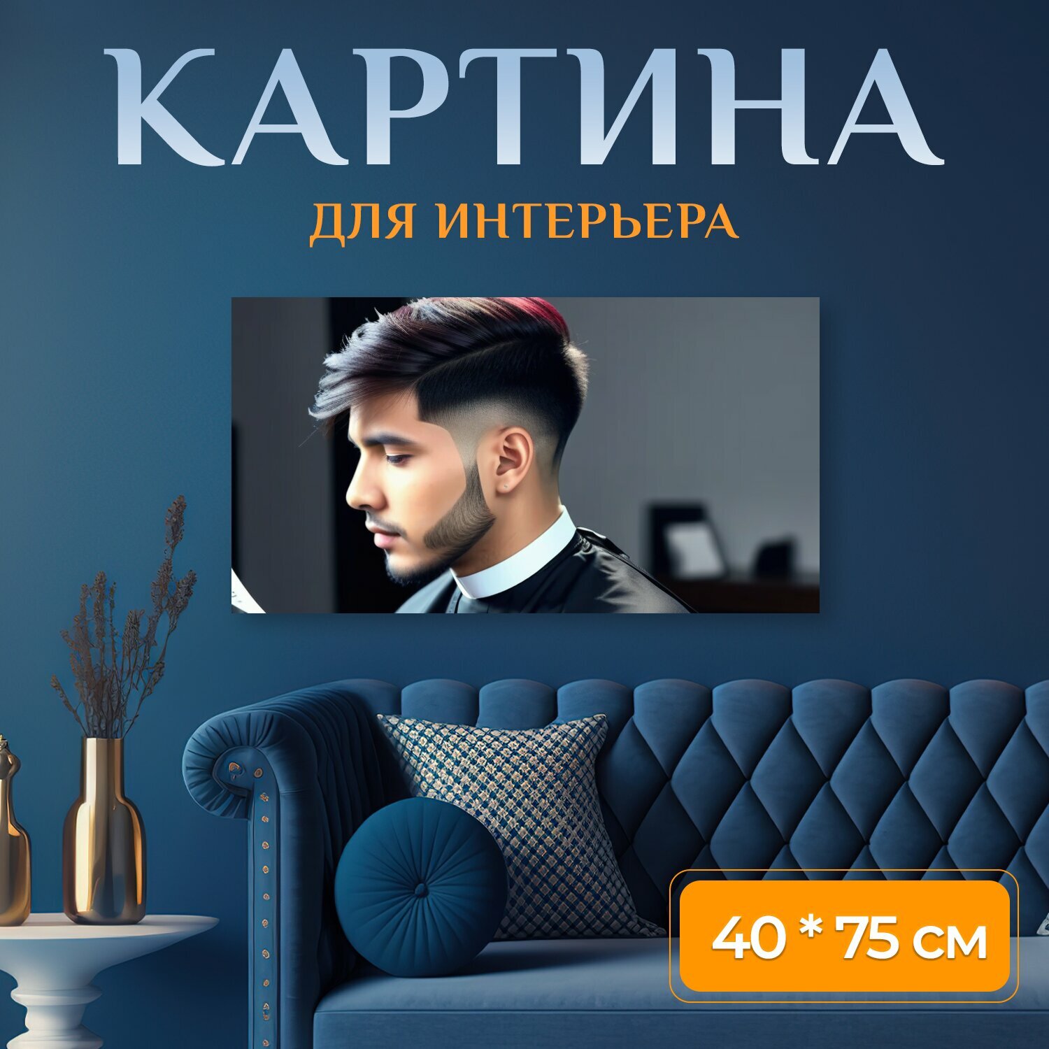 Картина на холсте в парикмахерскую "Стрижка в стиле классической музыки , " на подрамнике 75х40 см. для интерьера интересное: