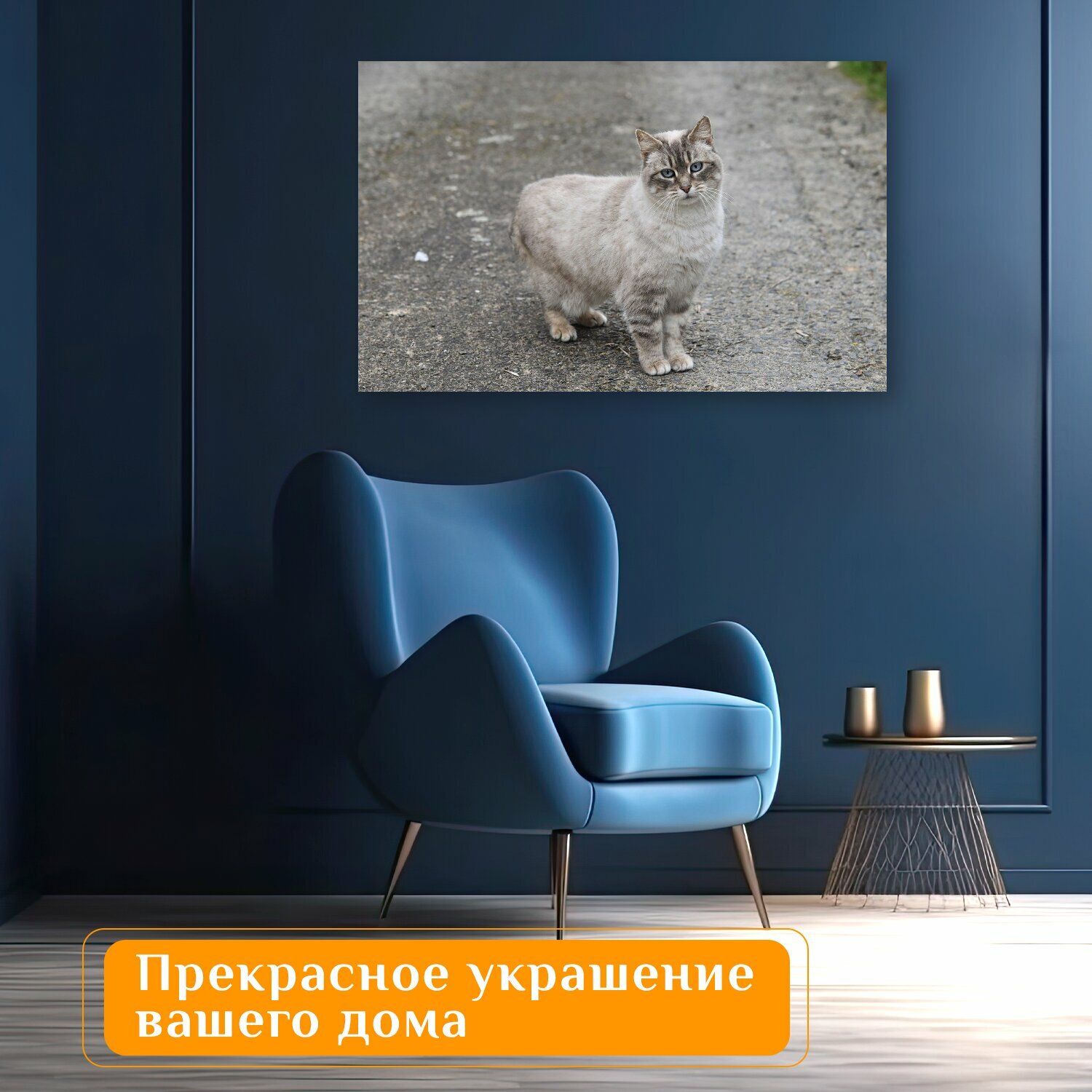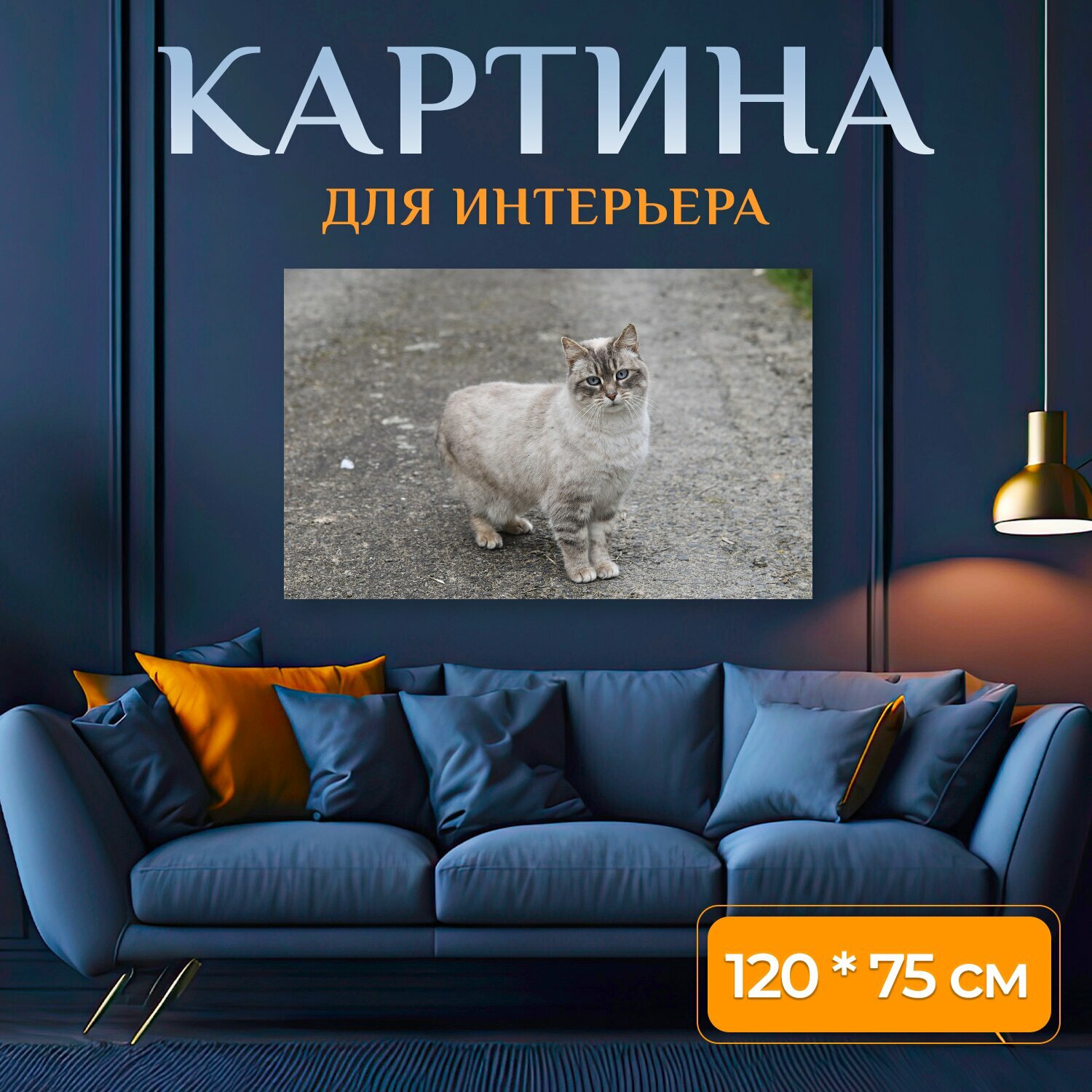Картина на холсте "Кошка, уличный кот, европейская короткошерстная" на подрамнике 120х75 см. для интерьера интересное: