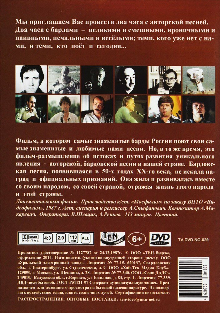 Два часа с бардами (DVD-R) (1987 год, ДВД диск, DVD Box, СССР) интересное: