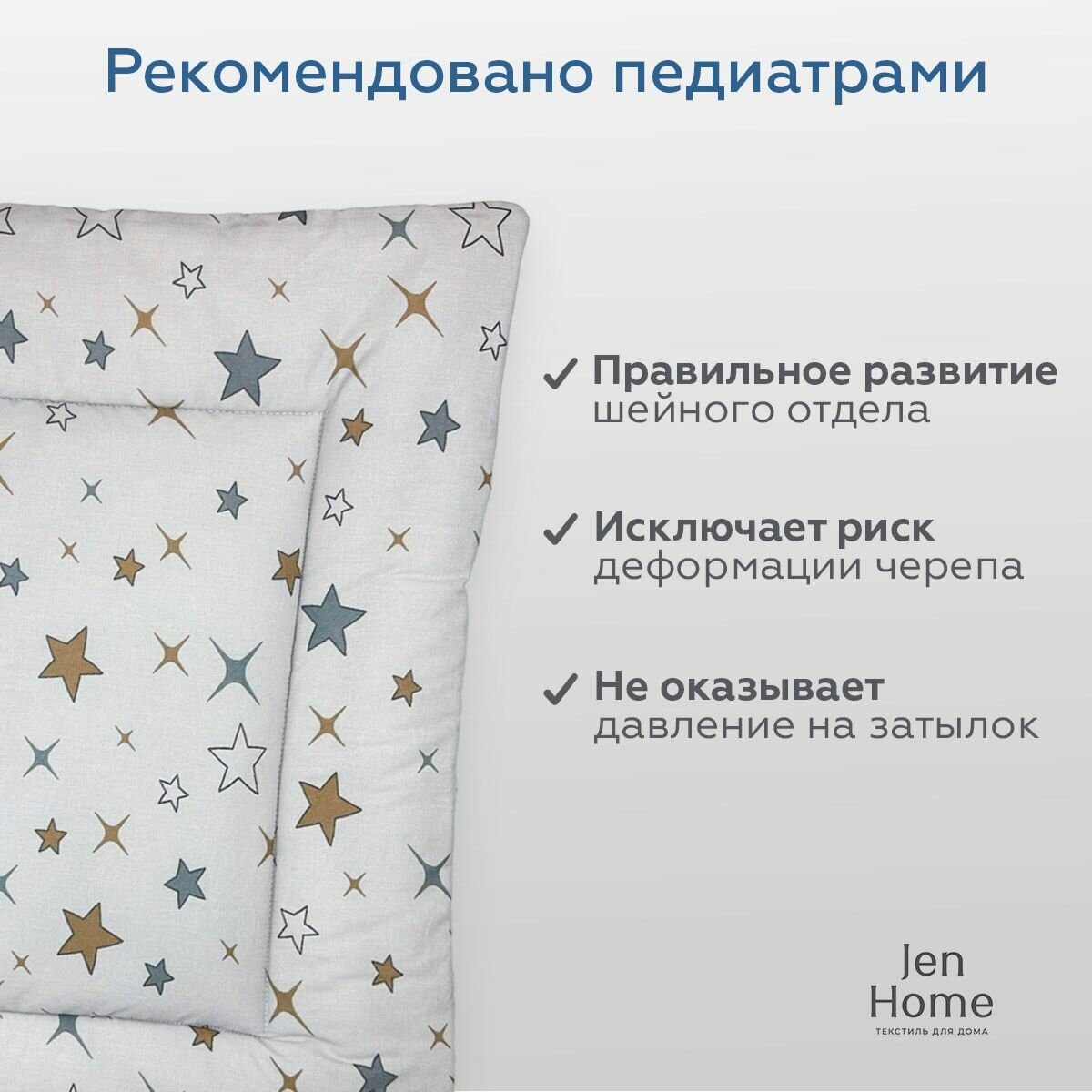 Купить Подушка для малышей, гипоаллергенная 40х60 "Звездопад на сером" плоская 0+