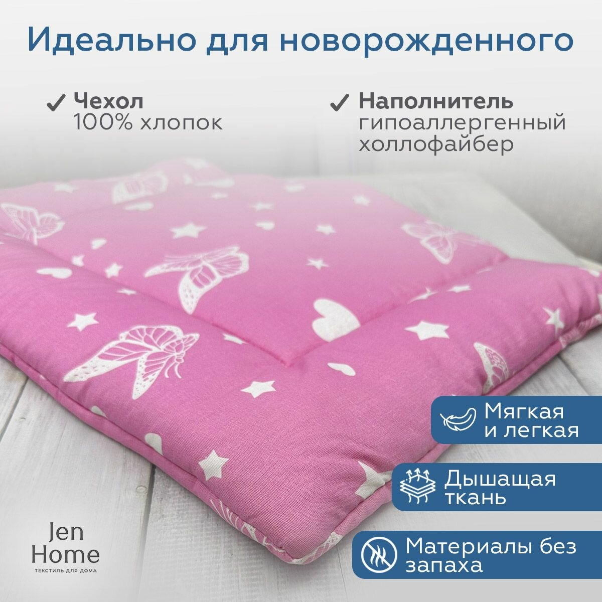 Купить Подушка для малышей, гипоаллергенная 40х60 "Бабочки на розовом" плоская 0+