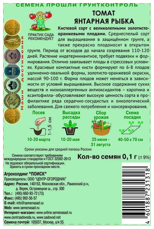 СохранитьСемена Томат Янтарная рыбка 0,1г Индет (Поиск) Сибирская интересное: