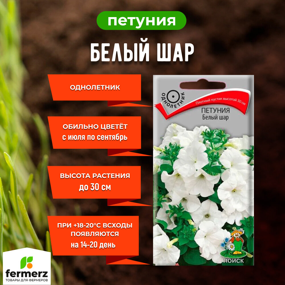 Семена цветов Петуния "Поиск" "Белый шар", однолетник, 0,1 г