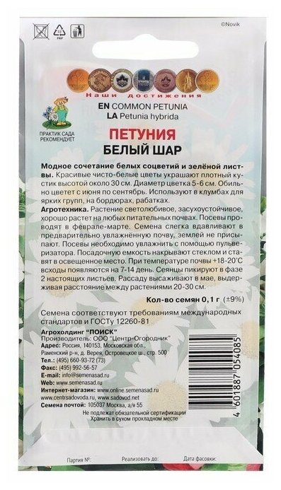 СохранитьСемена "Петуния Белый Шар" 0,1 гр от "Агрохолдинга поиск" интересное: