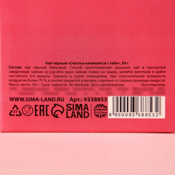Чай чёрный "Счастье начинается с тебя", в коробке, 50 г. интересное: