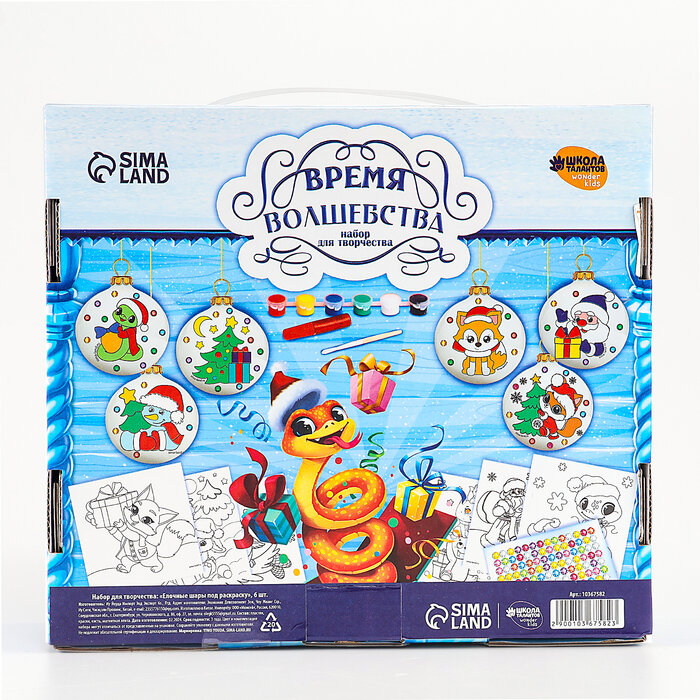 Купить Ёлочные шары под раскраску на новый год "Новогодний сюрприз. Змея", d = 5 ,5 см, 6 шт, новогодний набор для творчества