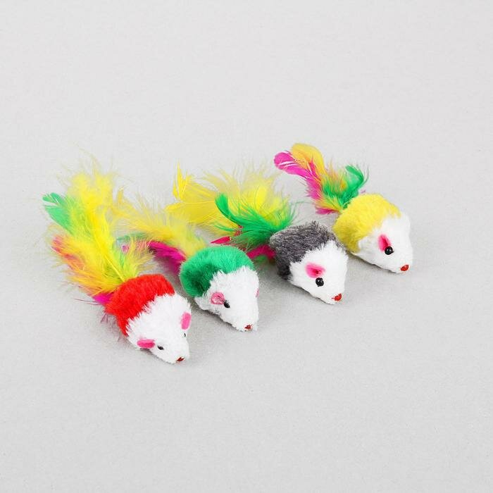 Купить Игрушка для кошек "Малая мышь" с перьями, 5 см, микс цветов