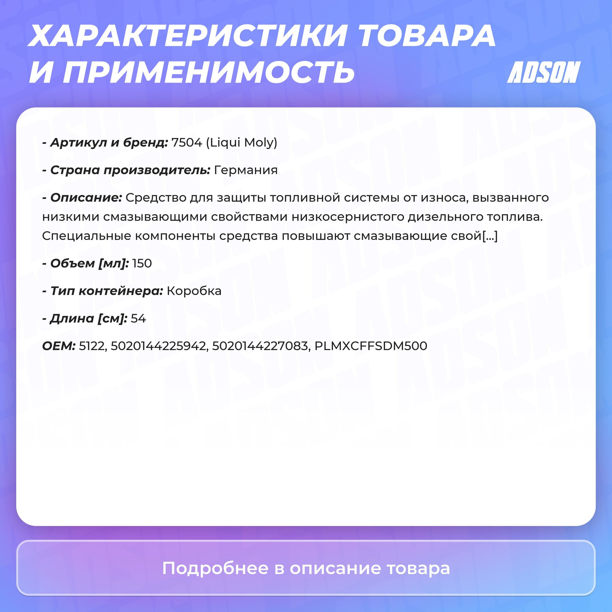 7504 Diesel Schmier-Additiv — Смазывающая присадка для дизельных систем 0.15 л.