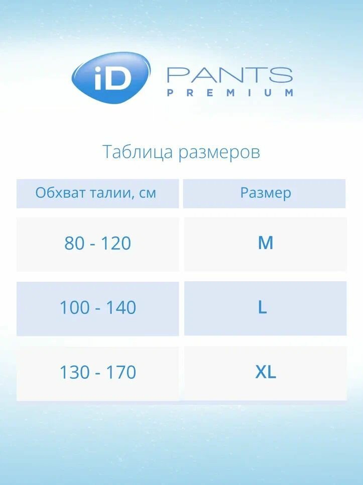 Подгузники трусы для взрослых/ размер L / iD PANTS PREMIUM/ обхват талии 100-140 см, 30 шт.