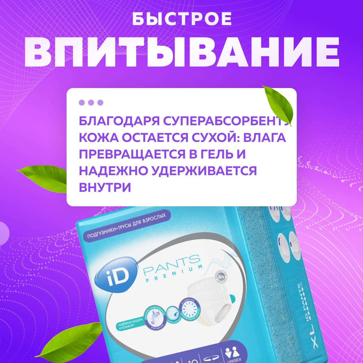 Трусы подгузники для взрослых ID Pants Premium L - 10 шт, памперсы для взрослых