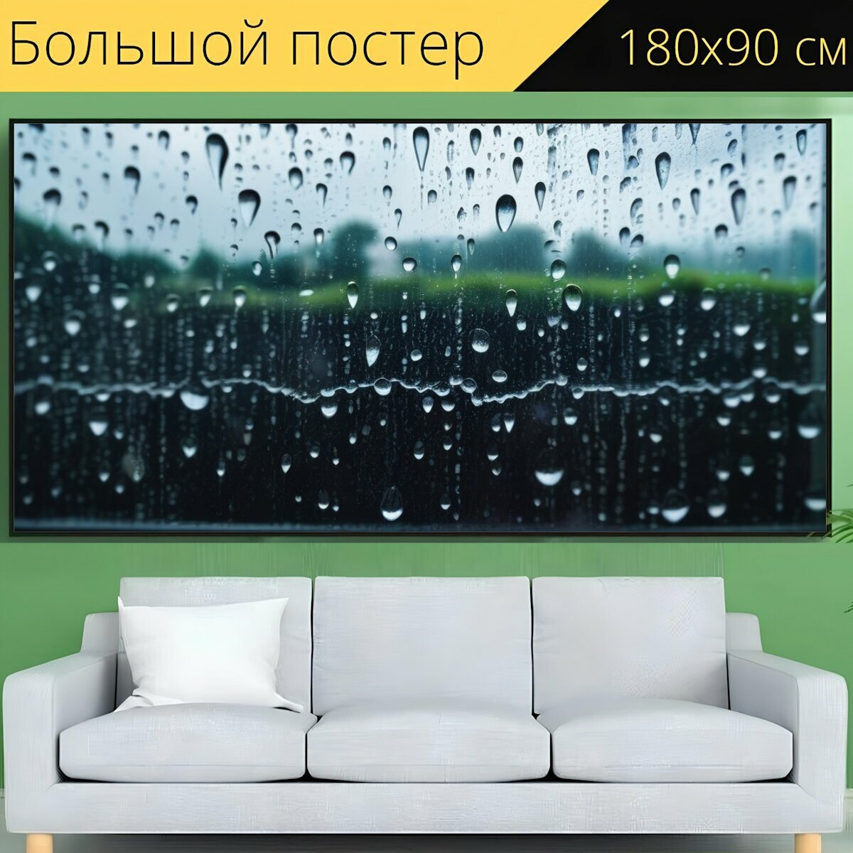 Большой постер "Кофе под дождем с каплями на окне" 180 x 90 см. для интерьера на стену интересное: