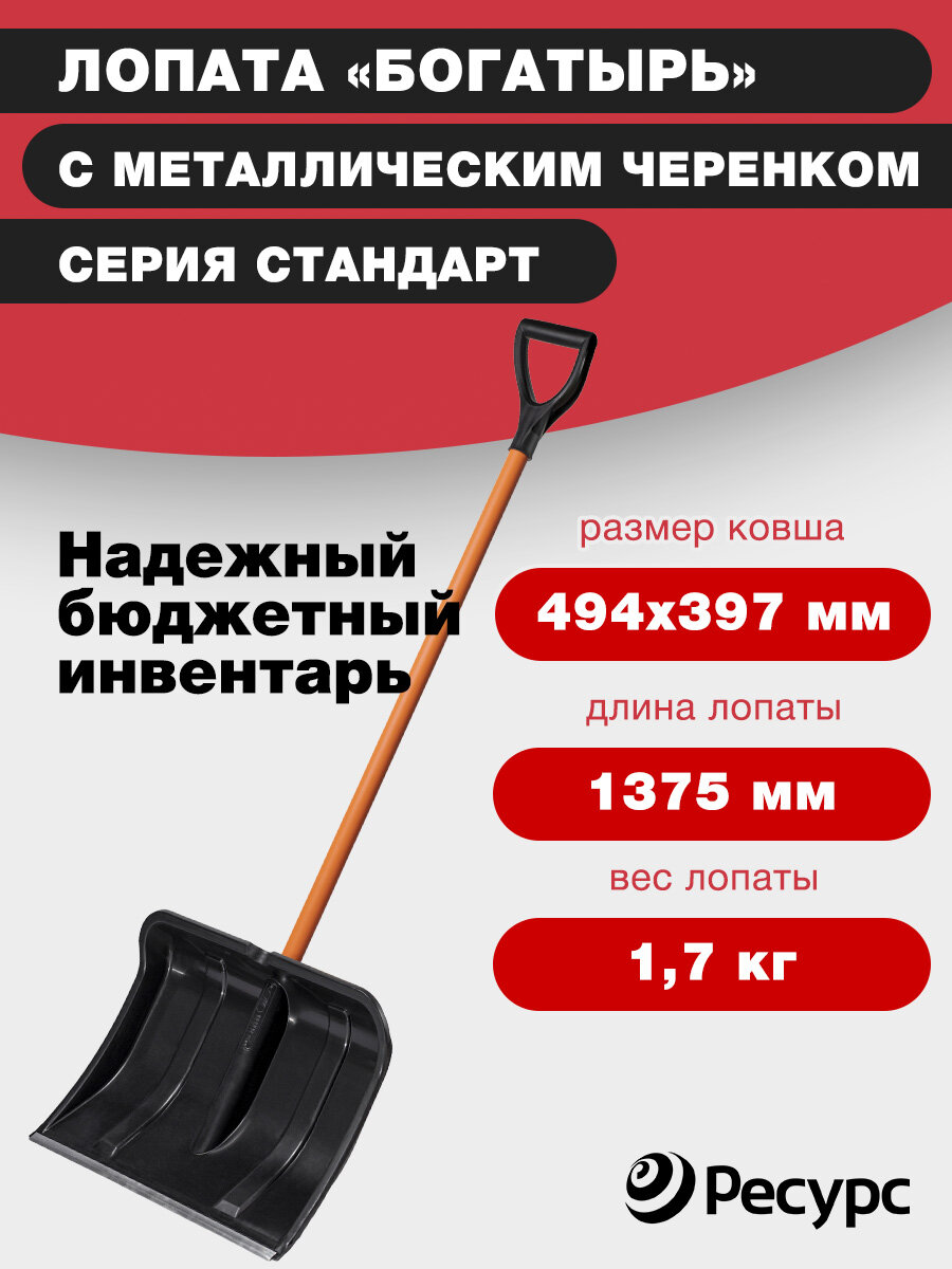 Цикл 6965-00 Лопата для снега Богатырь с метал черенком 500х375