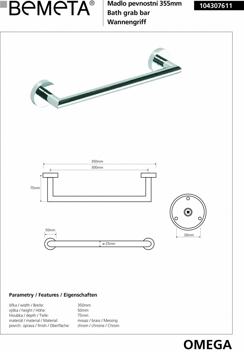 Поручень Bemeta Оmega, арт. 104307611, хром, 35 см