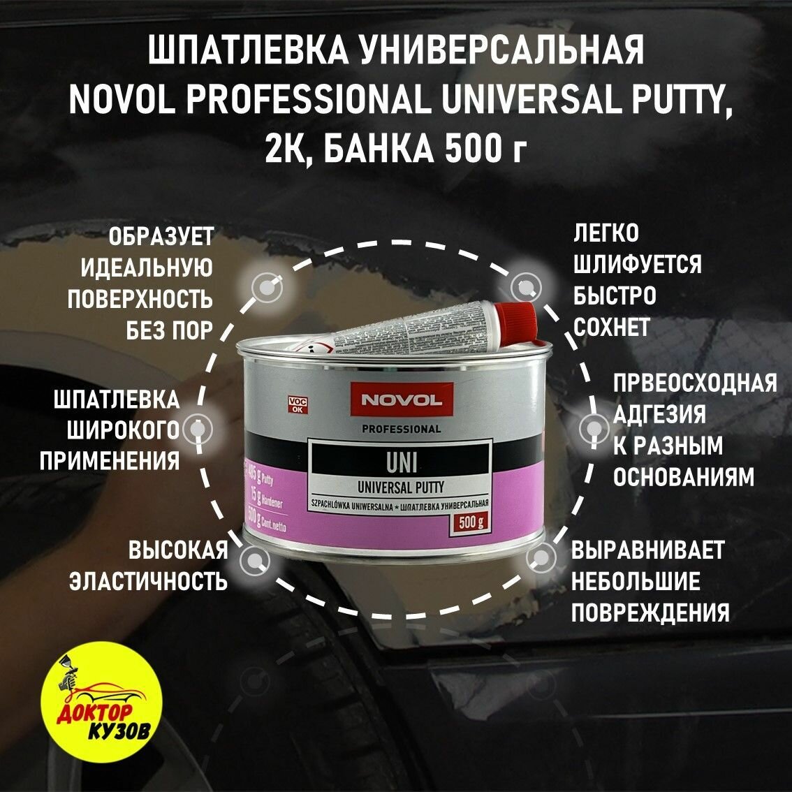 NOVOL Uni Universal Putty Универсальная полиэфирная шпатлевка 0,5 кг.