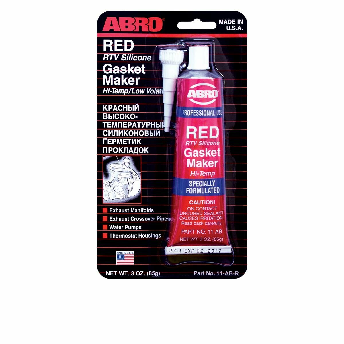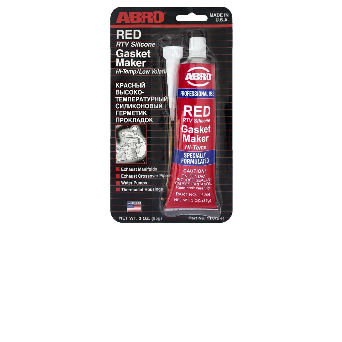 ABRO 11-AB Герметик 85гр - прокладочный красный силиконов. на уксусной основе для клапанных крышек, масл. насосов, водяных помп, крышек КПП, дифференциалов и др., до 343С