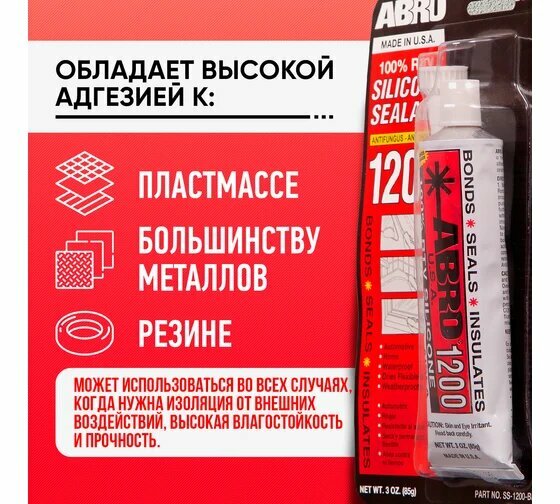Герметик-прокладка ABRO, высокотемпературный, силиконовый, красный, 85г