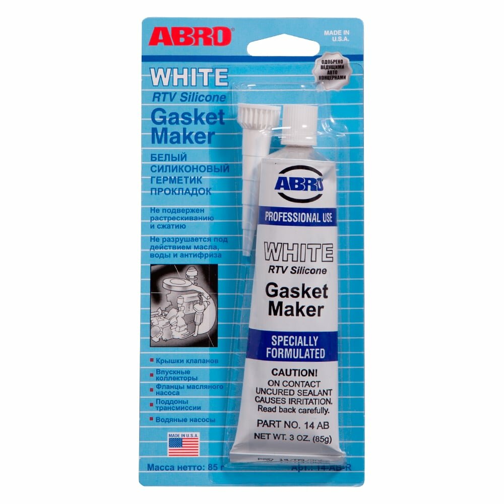 Герметик-прокладка ABRO White RTV Silicone Gasket Maker, силиконовый, белый, туба 85г, арт. 14-AB-R