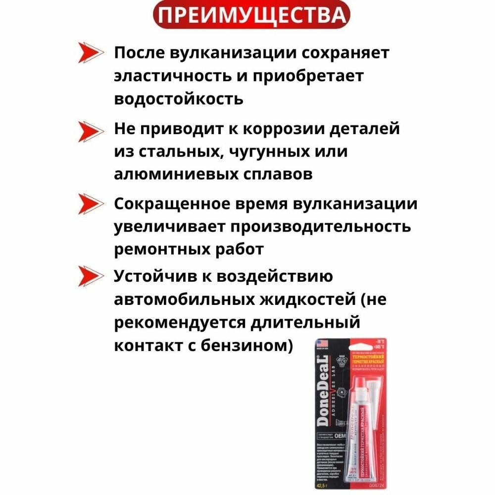 Силиконовый герметик для ремонта автомобиля Done Deal DD6724, 0.042 кг красный