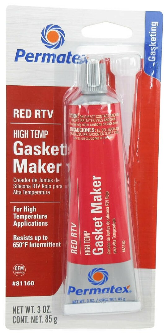 Герметик формирователь прокладок, красный силиконовый высокотемпературный (-54С +343С) Red High-Temp RTV Silicone Gasket, 85 гр