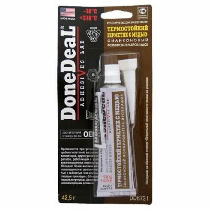 Ниже Вы можете прочитать отзывы на DoneDeal Термостойкий герметик-формирователь прокладок силиконовый, с медью 42,5g, шт, ознакомится с подробными характеристиками, посмотреть интересные обзоры и фотографии на DoneDeal Термостойкий герметик-формирователь прокладок силиконовый, с медью 42,5g, шт.