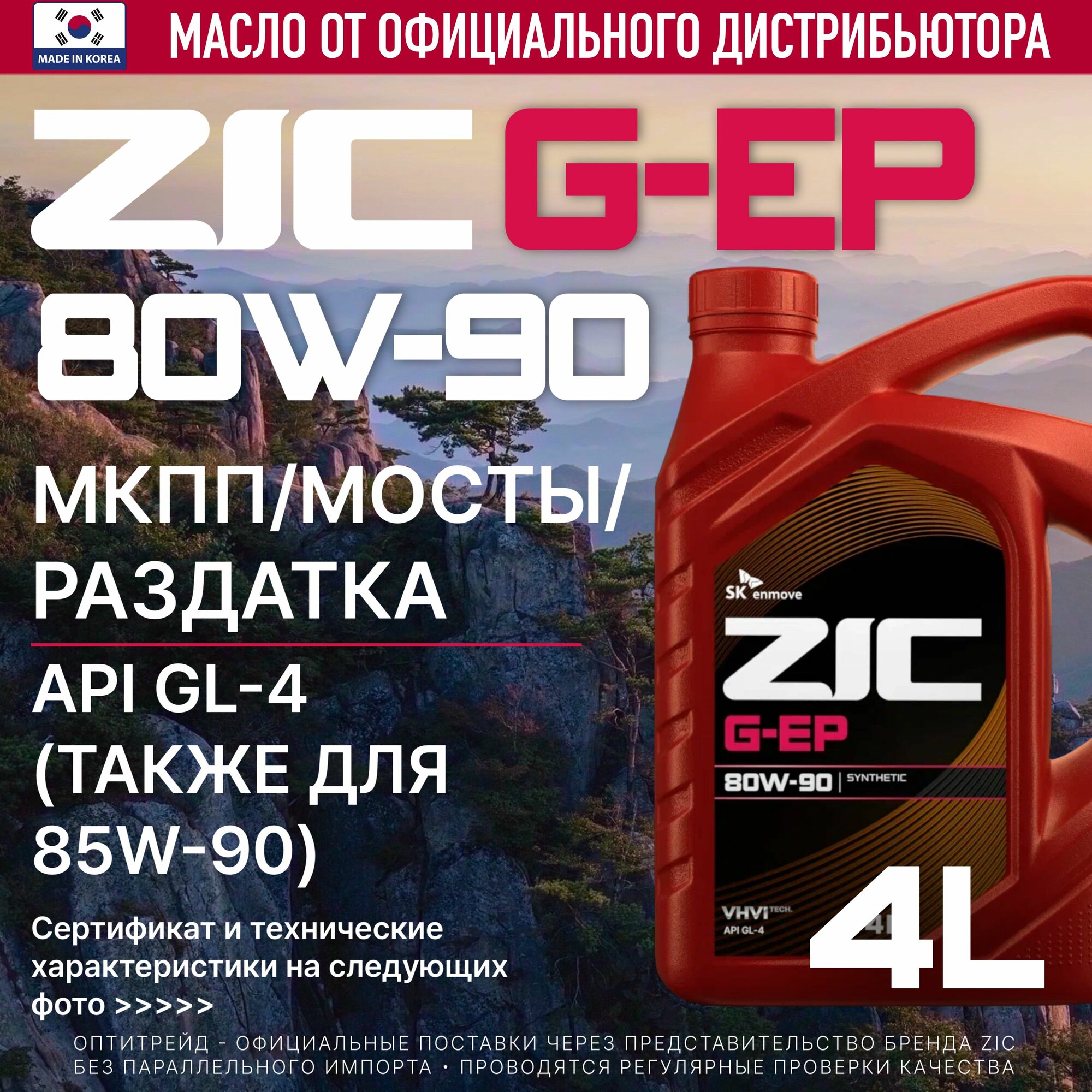 Масло трансмиссионное ZIC G-EP 80w90 синтетическое, GL-4, 4л, арт. 162625