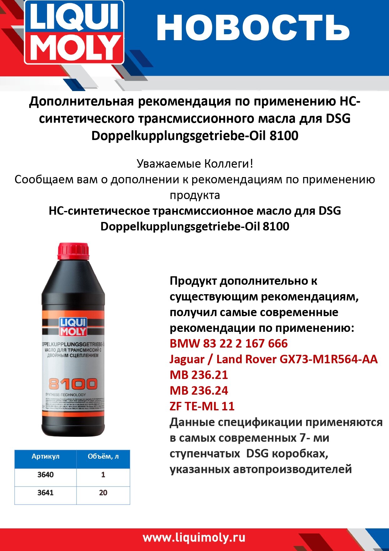 НС-синтетическое трансмиссионное масло для DSG Doppelkupplungsgetriebe-Oil 8100 1л LIQUI MOLY / арт. 3640 - (1 шт)
