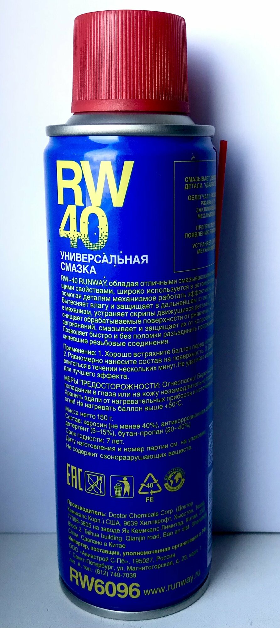 Ниже Вы можете прочитать отзывы на Смазка Runway универсальная RW-40 200 мл, аэрозоль с трубочкой, RW6096, ознакомится с подробными характеристиками, посмотреть интересные обзоры и фотографии на Смазка Runway универсальная RW-40 200 мл, аэрозоль с трубочкой, RW6096.