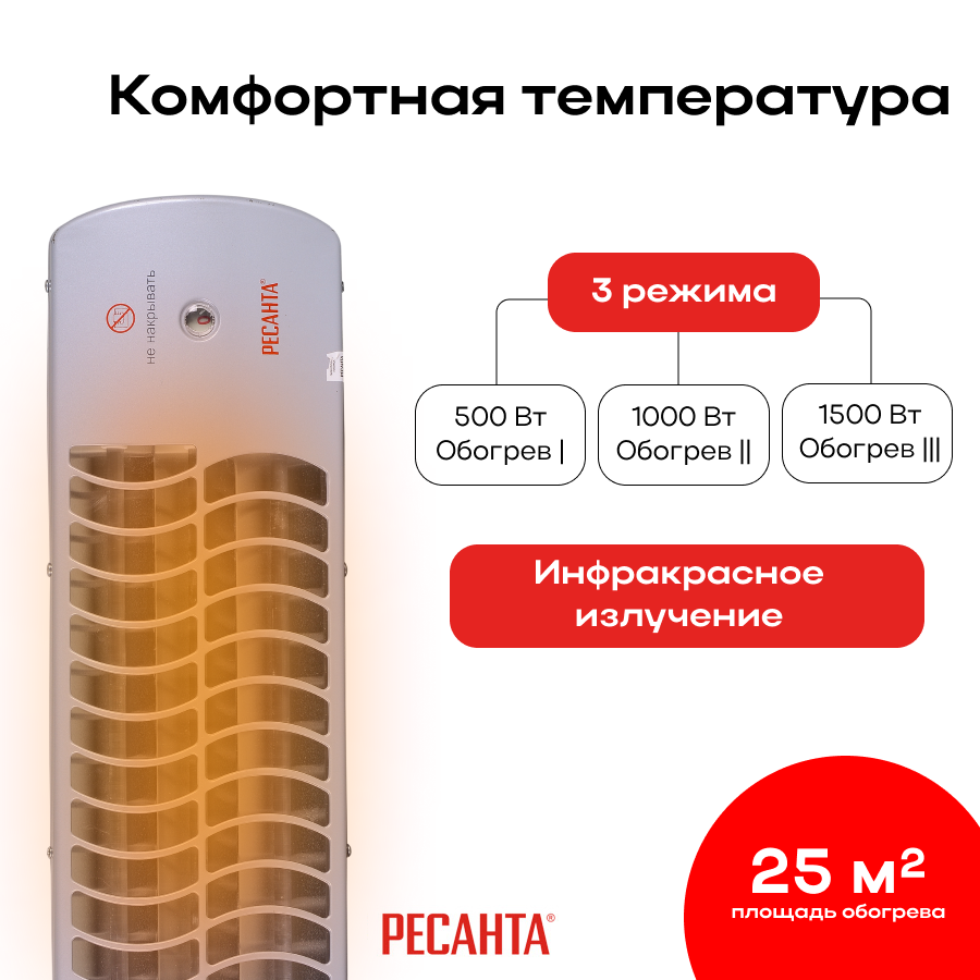 Инфракрасный обогреватель Ресанта ИКО-1500Л, 1500Вт, 25м2, кварцевый, белый [67/5/10]