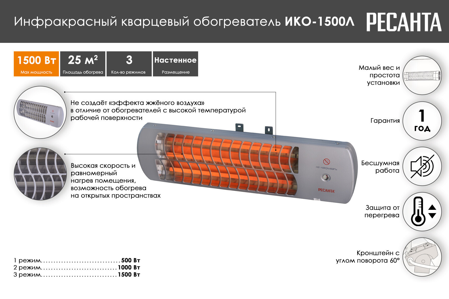 СохранитьИнфракрасный обогреватель Ресанта ИКО 1500Л интересное: