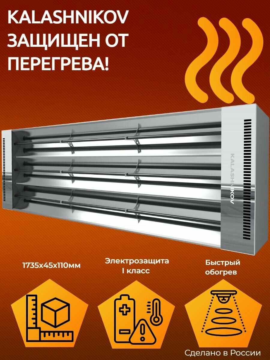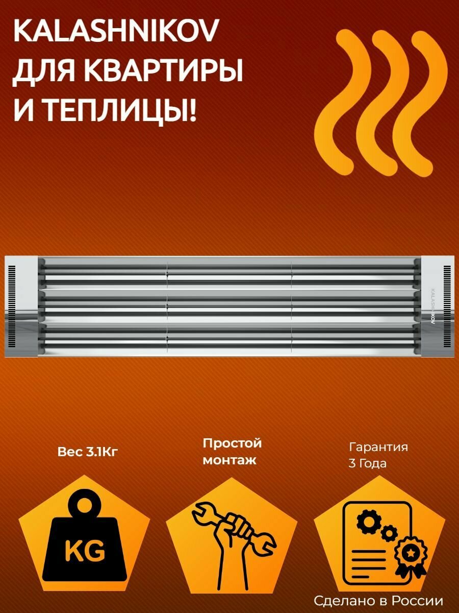 Инфракрасный обогреватель KALASHNIKOV KIRH-E20T-11, 2 кВт, 20 м², серебристый