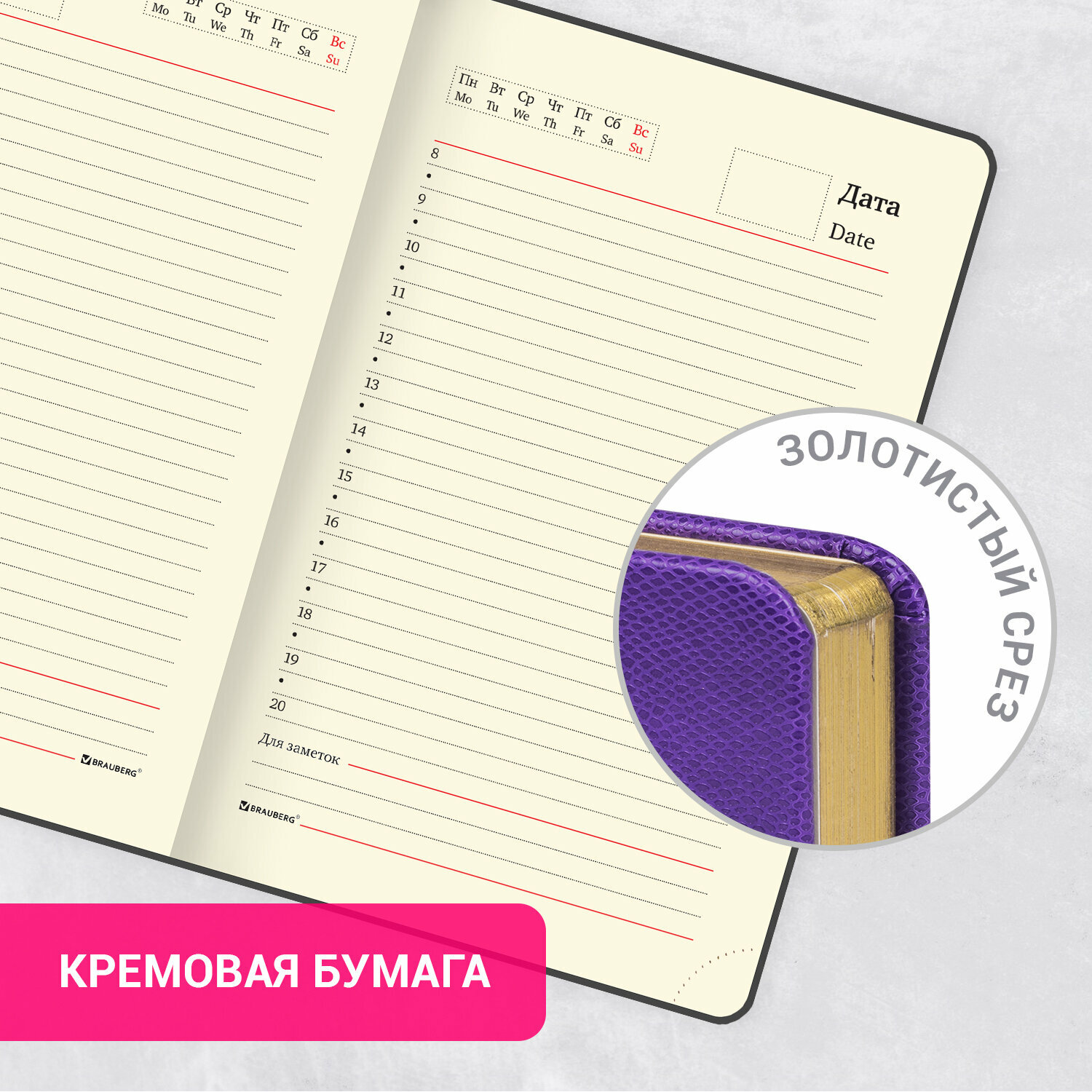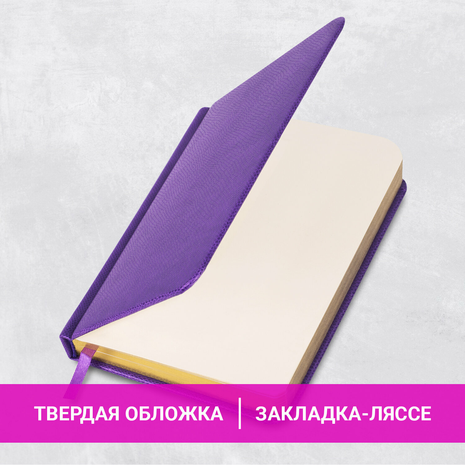 Ежедневник недатированный Brauberg малый, 100x150 мм, а6 iguana под кожу, 160 л, сиреневый (114470)